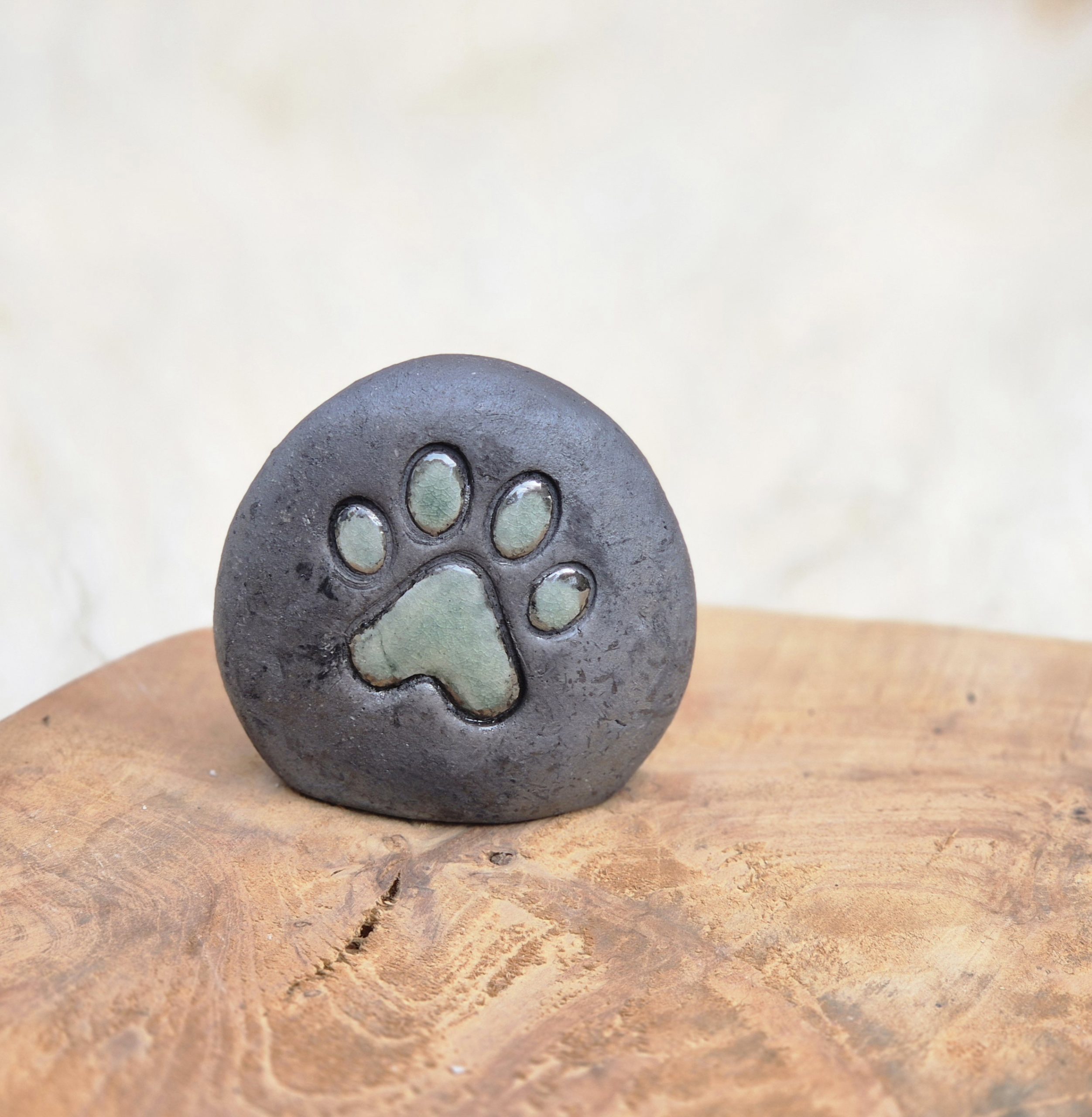 ​Dit unieke memorysteentje is met zorg en liefde met de hand gevormd en vervolgens gestookt volgens de traditionele Raku-techniek. De Raku-stook, waarbij het hete steentje plotseling in zaagsel wordt geplaatst, creëert een onvoorspelbaar craquelé-effect. Elk steentje is hierdoor absoluut uniek.