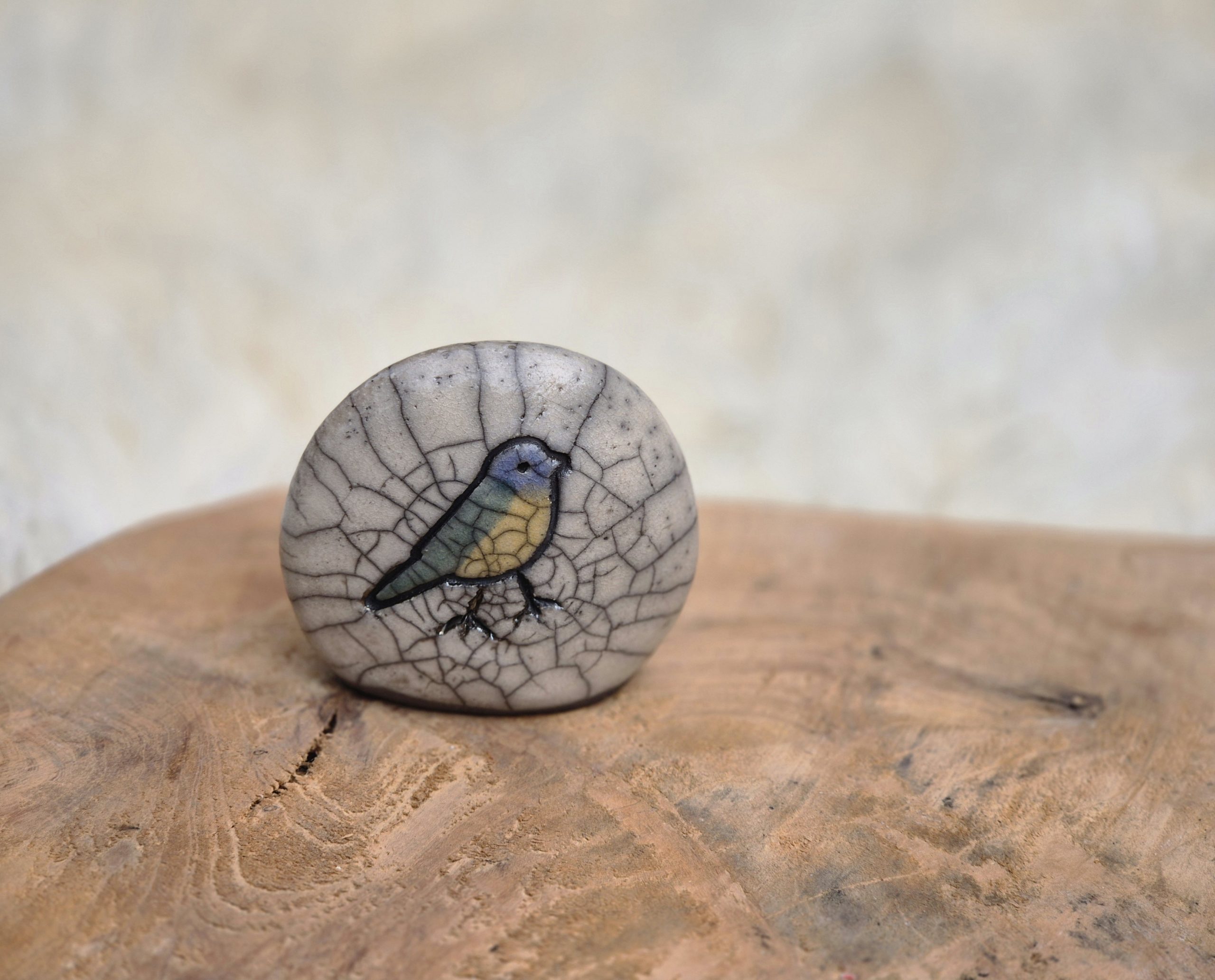 ​Dit unieke memorysteentje is met zorg en liefde met de hand gevormd en vervolgens gestookt volgens de traditionele Raku-techniek. De Raku-stook, waarbij het hete steentje plotseling in zaagsel wordt geplaatst, creëert een onvoorspelbaar craquelé-effect. Elk steentje is hierdoor absoluut uniek.