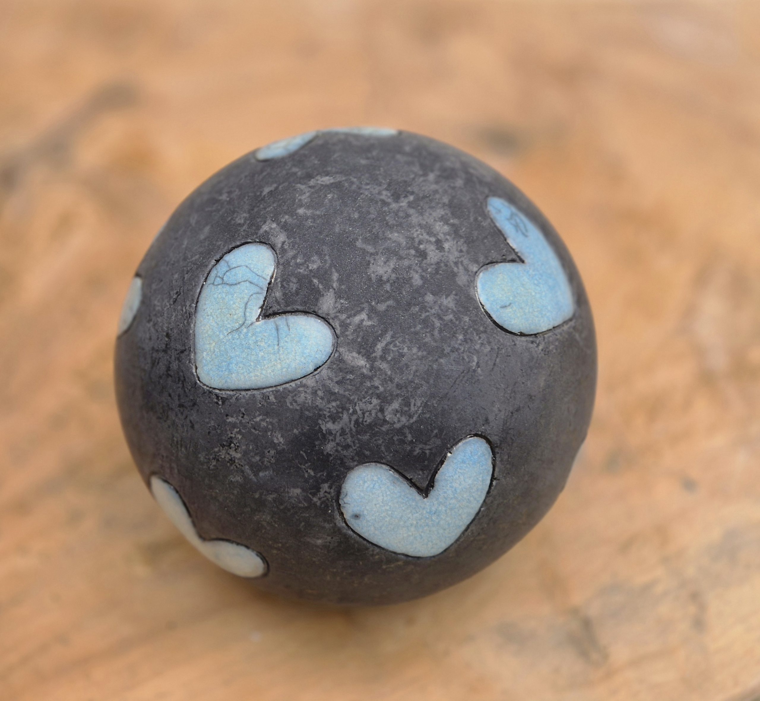 Dit urntje is omringt door liefde- de blauwe hartjes rondom het urntje